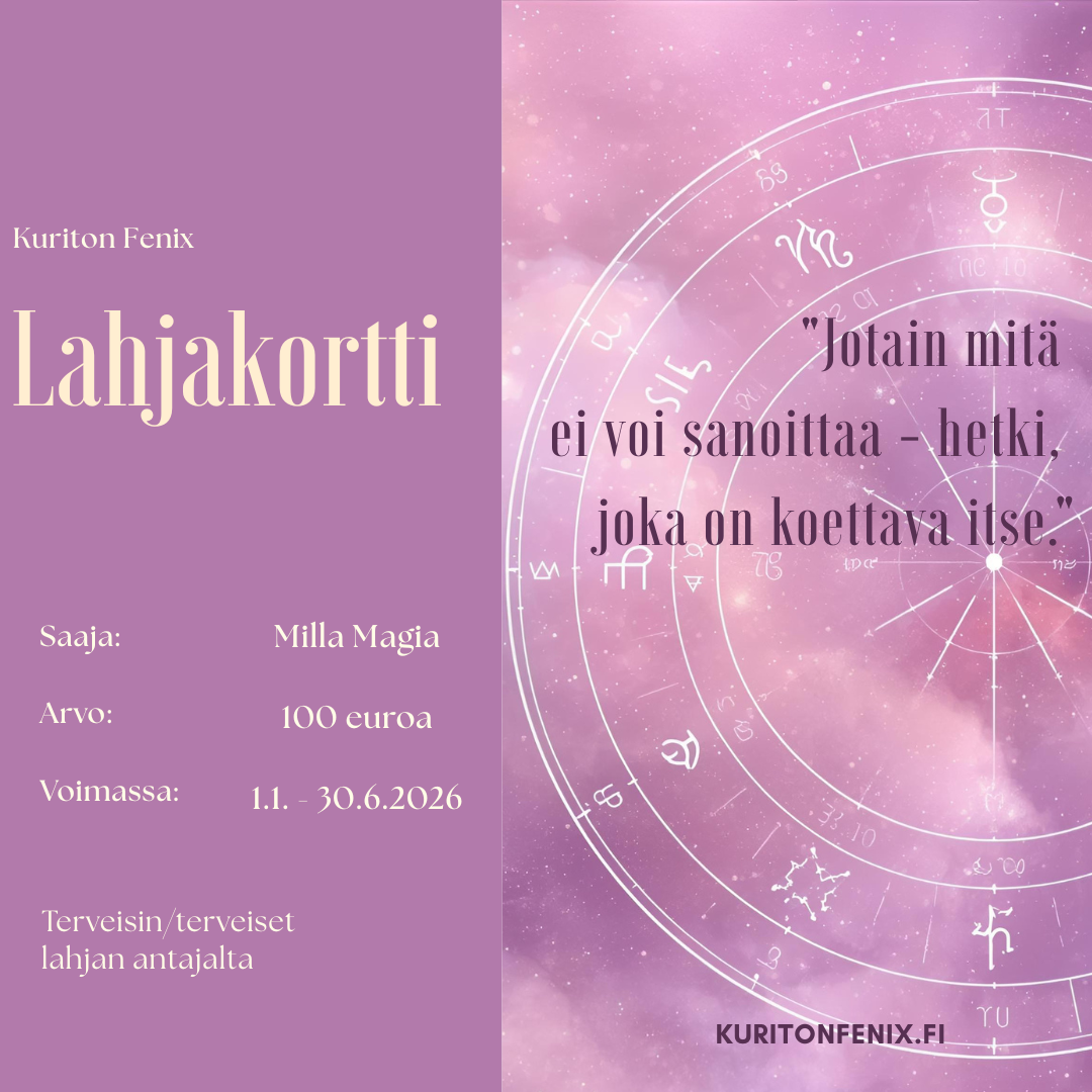 Saatavilla on erilaisia lahjakortteja, jotka voidaan räätälöidä täysin tarpeisiin sopivaksi. Lahjakortti voidaan käyttää kaikkiin palveluihin, myös osasuorituksena. Lahjakortti on voimassa 6kk.